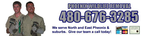 We are here to humanely and professionally solve your wildlife problem. Call PHOENIX WILDLIFE REMOVAL at 480-676-3285, and we will listen to your problem, give you a price quote, and