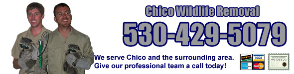 We are here to humanely and professionally solve your wildlife problem. Call Chico Wildlife Removal at 530-429-5079, and we will listen to your problem, give you a price quote, and