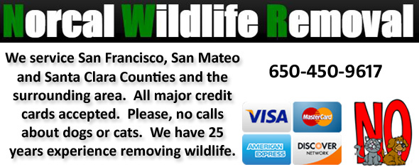We are here to humanely and professionally solve your wildlife problem. Call Norcal Wildlife Removal at 650-450-9617, and we will listen to your problem, give you a price quote, and