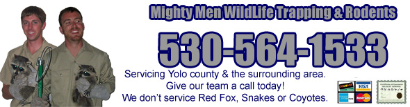 Mighty Men WildLife Trapping & Rodents is a full-service wildlife control company serving Woodland CA and the surrounding area. We specialize in urban and suburban wildlife damage