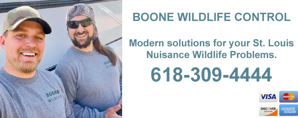 We are here to humanely and professionally solve your wildlife problem. Call Boone Wildlife Control at 618-309-4444, and we will listen to your problem, give you a price quote, and