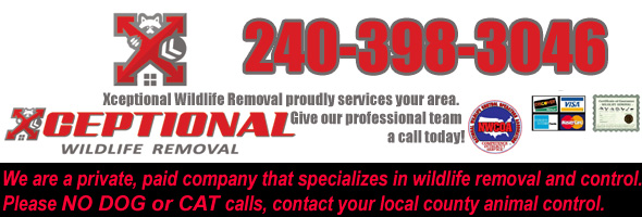We are here to humanely and professionally solve your wildlife problem. Call Xceptional Wildlife Removal at 240-398-3046, and we will listen to your problem, give you a price quote, and