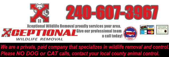 We are here to humanely and professionally solve your wildlife problem. Call Xceptional Wildlife Removal at 240-607-3967, and we will listen to your problem, give you a price quote, and