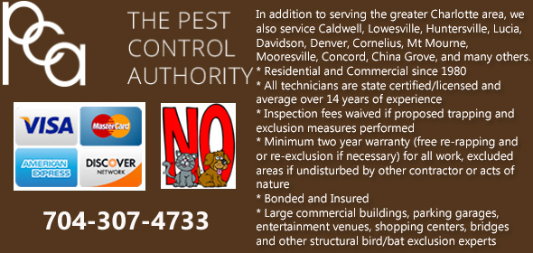 We do PERMANENT Charlotte rodent control the first time, by trapping, removing, and sealing your house shut. We also specialize in Charlotte bat control and bird control, which are often complex jobs. We are North Carolina