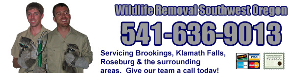 We are here to humanely and professionally solve your wildlife problem. Call Wildlife Removal Southwest Oregon at 541-636-9013, and we will listen to your problem, give you a price quote, and