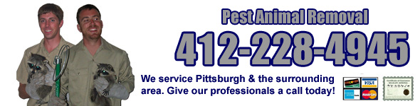We are here to humanely and professionally solve your wildlife problem. Call Pest Animal Removal at 412-228-4945, and we will listen to your problem, give you a price quote, and