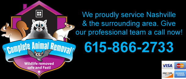 We are here to humanely and professionally solve your wildlife problem. Call Complete Animal Removal at 615-866-2733, and we will listen to your problem, give you a price quote, and