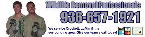 Lufkin Wildlife Removal Professionals is a full-service wildlife control company serving Crockett TX and the surrounding area. We specialize in urban and suburban wildlife damage