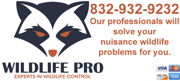We are here to humanely and professionally solve your wildlife problem. Call Wildlife Pro at 832-932-9232, and we will listen to your problem, give you a price quote, and