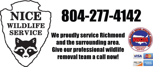 We are here to humanely and professionally solve your wildlife problem. Call Nice Wildlife Service at 804-277-4142, and we will listen to your problem, give you a price quote, and