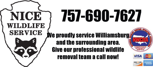 Nice Wildlife Service is a full-service wildlife control company serving Williamsburg VA and the surrounding area. We specialize in urban and suburban wildlife damage