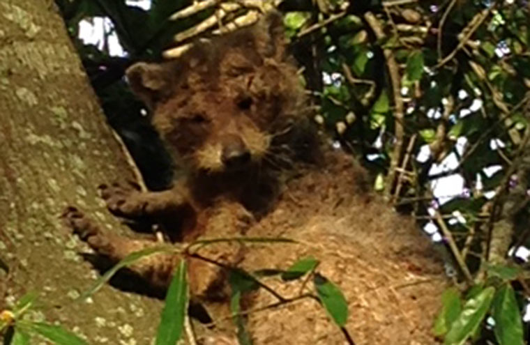 Many animals will run up trees when they feel they are being threatened. It helps to get above the predator when it's chasing after you, you know? If the animal stays up there for sometime, it’s usually because they think the predator or attacking animal is still around. It might even have mistaken you for a bigger predator looking to make a tasty meal out of it, and if you're still hanging around, the critter is never going to come down.