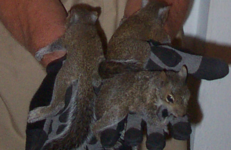 The equipment that wildlife removal experts or rehabilitators have to remove wild animals is impressive — a range of items that can get these critters out in almost every situation. Snare poles, traps that are all-enclosing, and even full protective suits … Biting and scratches aren't the only concern with squirrels, although they should be one of your main concerns. If you can't ensure that you will do the removal job safely, we recommend giving the professionals a call. They’ll have everything needed to get the job done safely … gloves included!